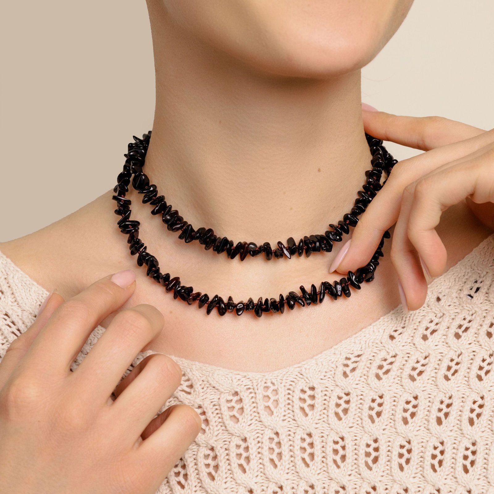 Amber necklace chips 90 cm cherry