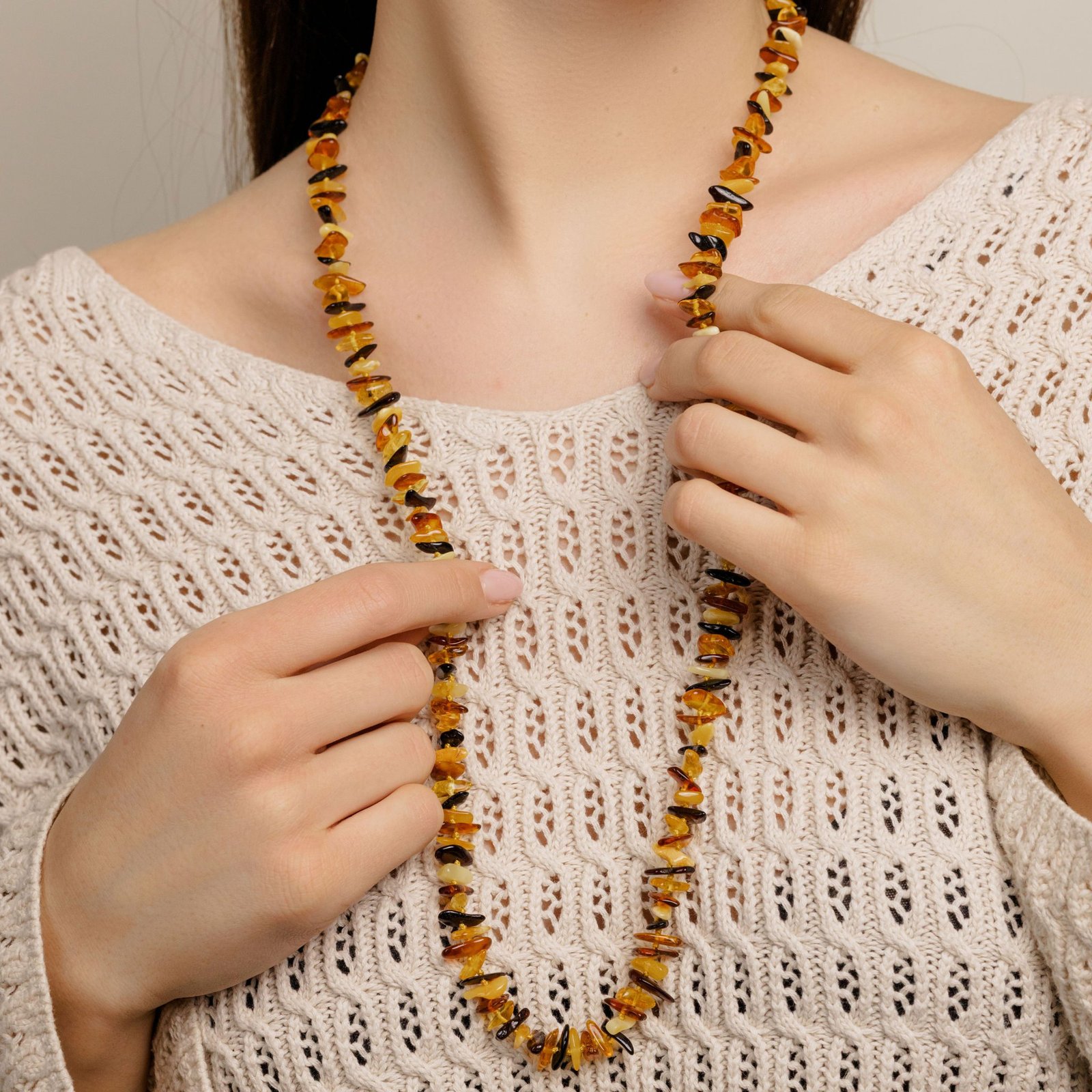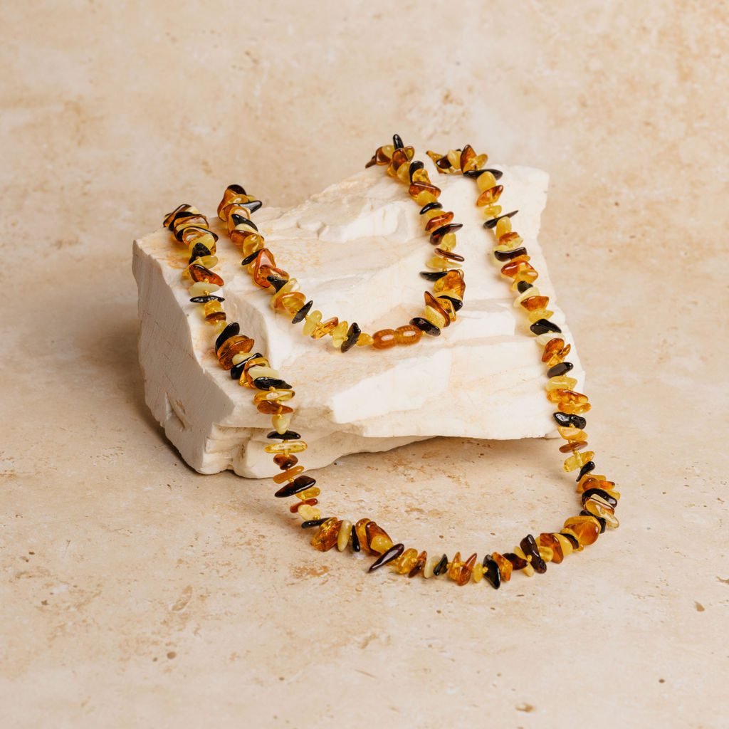 Amber necklace chips 90 cm multicolor
